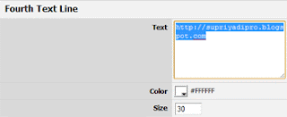 8. Fourth Text Line: isi alamat blog anda. Misal http://supriyadipro.blogspot.com. Pilih juga warna dan ukuran font.